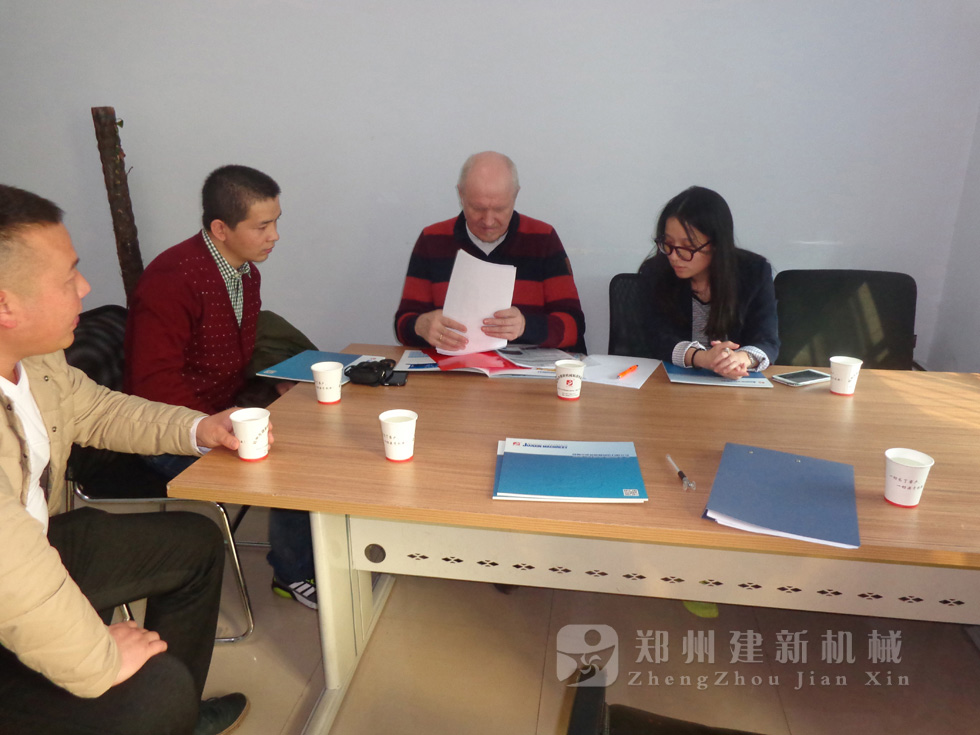 2014年11月,来自俄罗斯的客户来到郑州建新公司签订了两套时产120方混凝土搅拌站设备的大订单,下图为建新公司销售部刘经理、经理带客户参观建新公司的生产车间及成品货场。